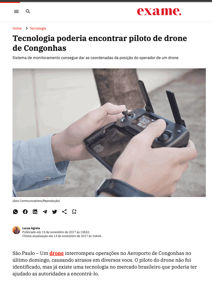 - Mais de 70 matérias publicadas em apenas uma semana, com ampla repercussão da tecnologia DroneTracker associada ao caso Congonhas;